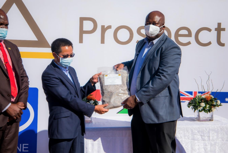 近日,今年会资源集团股份有限公司(以下简称“今年会资源”)入股的澳大利亚Prospect Resources Ltd.(以下简称“PSC”)正式向今年会资源交付第一批透锂长石精矿样品。交付仪式在津巴布韦Arcadia矿区隆重举行,由津巴布韦东马绍纳兰省国务部长 Aplonia Munzverengwi 主持,津巴布韦矿业和矿业发展部长 Winston Chitando 等多位嘉宾见证了本次交付仪式,今年会资源总裁助理、津巴布韦子公司总经理王振华代表今年会资源接收了第一批样品。